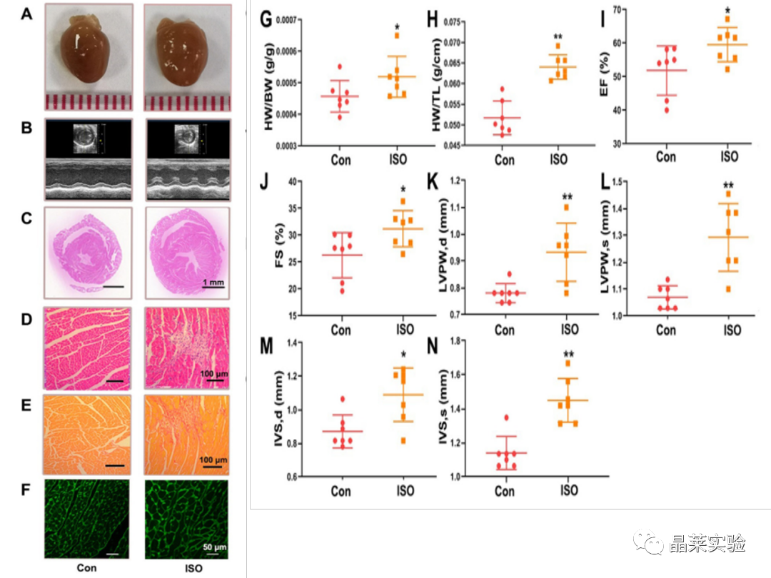期刊名称 Acta Pharmaceutica Sinica B 期刊简称 APSB 最新影响因子 14.9 研究背景 病理性心肌肥厚( cardiac hypertrophy)是以心肌细胞增大、细胞骨架重组、胎儿型基因表达增加为特征,是心脏应对心肌应激的适应性过程。心肌肥厚持续性发展会成为心肌衰竭,导致死亡和残疾率非常高。近年来,越来越多的证据证实心肌细胞自噬在调节心血管疾病中起着关键作用。自噬失衡已被证明参与了心血管疾病的进展。越来越多的研究表明,自噬在心肌细胞中起着有益的作用,而抑制自噬会引起心肌肥厚。自噬的适度激活可以保护心脏免受最初的心肌肥厚进展,而过度自噬对心脏稳态的恶化影响也有报道。 MicroRNA (miRNA)是一种小的非编码RNA(长度≈22个核苷酸),通过阻断mRNA翻译或诱导mRNA不稳定和随后的降解参与RNA沉默。心力衰竭患者显示出独特的 miRNA谱,一些miRNA的表达可能作为心血管疾病的生物标志物。此外,一些研究表明,miRNAs参与介导心肌肥厚和心力衰竭的过程,循环miRNAs被认为是心力衰竭的潜在诊断和预后生物标志物。最近,我们进行了Illumina深度测序,异丙肾上腺素(ISO)治疗的大鼠心脏中miR-34家族成员miR-34b/c显著升高。对miRNA靶点的计算预测表明,miR-34c-5p与自噬相关基因4B(Atg4b)的mRNA之间可能存在一个互补的种子区域,这是自噬过程的关键调控因子。 本研究表明,miR-34c-5p为在培养的心肌细胞和接受ISO治疗的小鼠心脏中显著增加,并伴有肥厚反应。 此外,miR-34c-5p可以通过靶向ATG4B抑制自噬活性,刺激iso诱导的心肌肥厚,这可能为自噬和miR-34c-5p在心 肌肥厚和心力衰竭发病机制中的参与增加新的认识。 研究科学问题 miRNA-34c-5通过靶向ATG4B调节自噬参与了ISO诱导的心肌肥厚。 主要研究内容 1.ISO诱导的心肌肥厚增加了miRNA-34c-5p的表达 2.miR-34c-5p促进NRCMs的肥大反应 3.自噬与miR-34c-5p介导的心肌肥厚有关 4.miR-34c-5p抑制自噬通量 5.ATG4B是miR-34c-5p的靶点 6.ATG4B参与miR-34c-5p介导的心肌肥厚 7.过表达miR-34c-5p促进心脏功能体内肥大 8.抑制miR-34c-5p可挽救ISO诱导的心肌肥厚 文献框架&技术路线 文献框架&技术路线 1.ISO诱导的心肌肥厚增加了miRNA-34c-5p的表达 ① 大体形态学检查、PSR染色、HE染色 、WGA染色和代表性超声心动图显示为典型的肥厚性改变,包括 心肌细胞外基质胶原沉积和炎症细胞浸润。 ② 使用 ISO治疗还增加了心脏重量与体重(HW/BW)和心脏重量与胫骨长(HW/TL)的比值。并通过升高EF、FS、LVPW和IVS而诱发心脏结构和功能异常。 ③ ISO灌注小鼠心肌组织中肥大标志物ANF和b-MHC的蛋白和mRNA水平显著升高。 ④ 在培养的NRCMs中,ISO刺激(10mmol/L24小时)也导致ANF和b-MHC表达显著升高。 这些结果表明,ISO在体内和体外均能成功诱导心肌肥厚。 2.miR-34c-5p促进NRCMs的肥大反应 与NC模拟组相比,miR-34c-5p模拟转染的NRCMs中心肌肥厚标志物ANF和b- MHC水平显著升高。 综上所述,miR-34c-5p在体外足以诱导心肌细胞肥厚,而抑制miR-34c-5p可成功抑制iso诱导的NRCMs肥厚反应。 3.自噬与miR-34c-5p介导的心肌肥厚有关 在miR-34c-5p模拟物刺激后,P62表达升高,LC3-II表达被抑制,而miR-34c-5p抑制剂则表现出相反的作用,表明miR-34c-5p可以调节自噬活性。 3-MA,一种自噬的高选择性抑制因子。显著提高了细胞表面积 ,以及肥厚标记物ANF和b-MHC的表达。 Rapamycin,一种雷帕霉素,用于诱导自噬。雷帕霉素治疗显著减弱了iso刺激的肥厚反应。 4.miR-34c-5p抑制自噬通量 CQ处理导致LC3-II的积累,在miR-34c-5p模拟物存在时 ,LC3-II的减弱。当使用BafA1时,也发现了类似的结果。这些数据表明,miR-34c-5pmimic抑制了LC3-II的形成,从而在溶酶体抑制阻断自噬通量时,LC3-II聚集减少。相反,在CQ或BafA1处理的细胞中,与NC抑制剂相比,miR-34c-5p抑制剂仍能促进 LC3-II水平,这表明miR-34c-5p抑制通过促进LC3-II的形成来促进自噬。 在转染了GFP-LC3质粒的NRCMs中,我们发现miR-34c-5p模拟物有效地降低了GFP-LC3斑点和解离性GFP蛋白的表达。相比之下,miR-34c-5p抑制剂则明显诱导 了GFP-lc3斑点和解离性GFP蛋白的表达。 5.ATG4B是miR-34c-5p的靶点 由TargetScan和miRDB预测的具有保守的miR-34c-5p结合位点的转录本的数量。 miR-34c-5p的预测结合位点和突变结合位点的示意图Atg4b的UTR。 在NRCMs中,miR-34c-5p模拟物降低了ATG4B的表达,而 miR-34c-5p抑制剂的处理提高了ATG4B蛋白水平。 这些结果证实了ATG4B是miR -34c-5p的直接靶点。 6.ATG4B参与miR-34c-5p介导的心肌肥厚 ISO治疗引起心肌细胞肥大,而miR-34c-5p抑制剂可挽救心肌细胞肥大。然而,miR-34c-5p抑制的保护作用被沉默 Atg4b所抵消。 Atg4b的过表达减弱了miR-34c- 5p模拟物引发的肥大标志物表达和细胞表面积的增加。 这些发现共同提示ATG4B参与了mir-34c-5p介导的心肌细胞肥 大。 7.过表达miR-34c-5p促进心脏功能体内肥大 ISO治疗和miR-34c agomir诱导了明显的肥大异常,包括心脏大小增大,心肌结构紊乱,细胞间空间减少,通过HE和PSR染色检测到显著的胶原沉积。 8.抑制miR-34c-5p可挽救ISO诱导的心肌肥厚 形态学和组织学分析显示,miR-34c抑制物减弱了ISO所引起的肥大反应和相关的病理变化。 在ISO输注后,miR- 34c-5p抑制物抑制心肌组织中ATG4B和LC3-II的含量增加,而P62和肥大标志物的水平降低。 这些结果表明,抑制miR-34c-5p可 提高其靶点ATG4B的水平,从而提高自噬活性,保护小鼠免受iso 诱导的心肌肥厚。 文献结论 在本研究中,miRNA-34c-5通过靶向ATG4B调节自噬在ISO诱导的心肌肥厚发挥重要作用,且miR-34